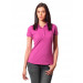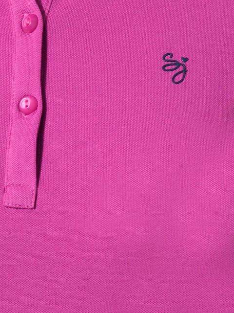 Pink polo T-shirt with a spread collar, chest buttoned placket, short sleeves with ribbed cuffs and embroidered branding on the left chest