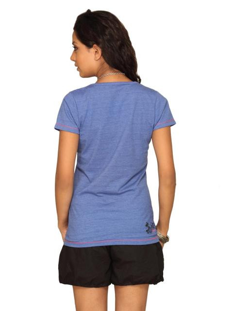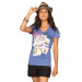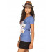 Blue v-neck top in 100% cotton, with short sleeves and bold chest print