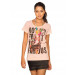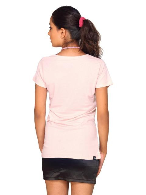 Light peach scoop neck top in 100% cotton, with short sleeved and bold chest print