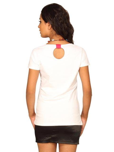 Paint your canvas with the colours of life with this white t-shirt from spykar. The stylish scribble-style print and embroidery on the front, coupled with the peep back makes this tee increadibly desirable. Team it with demin pants, shorts or skirts and stylish sports shoes for that cool look.