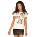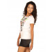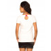 White t-shirt made of 96% cotton and 4% elastane, with a peep back, short sleeves and graphic print with embroidery on the front