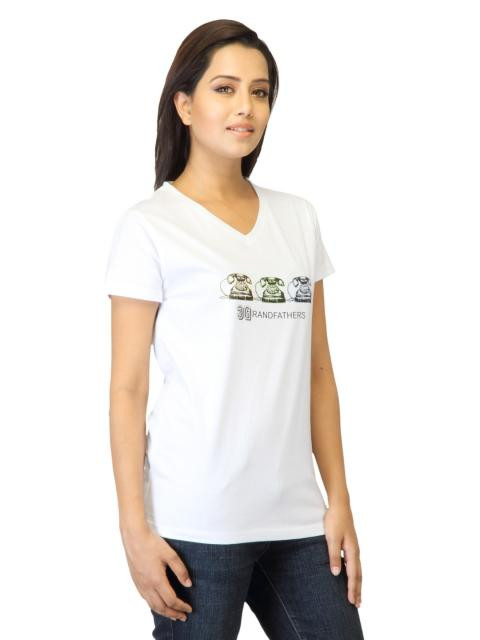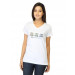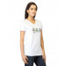 White V-neck T-shirt made of 100% cotton, has short sleeves, a ribbed neckline and graphic on the chest