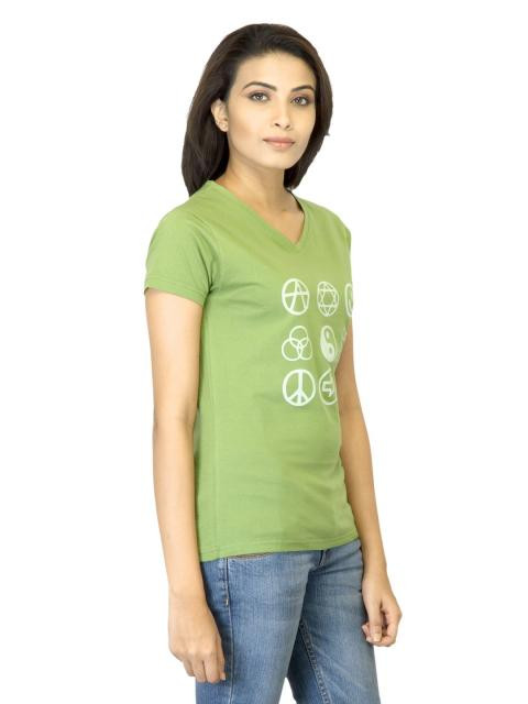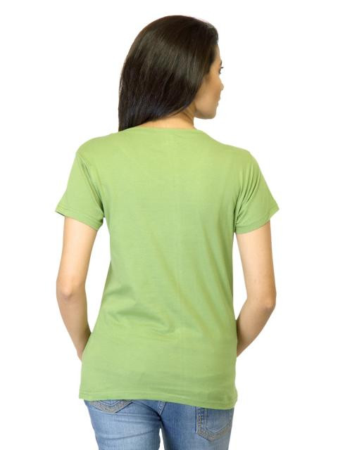 Green T-shirt made of 100% cotton, has short sleeves and print on the chest