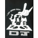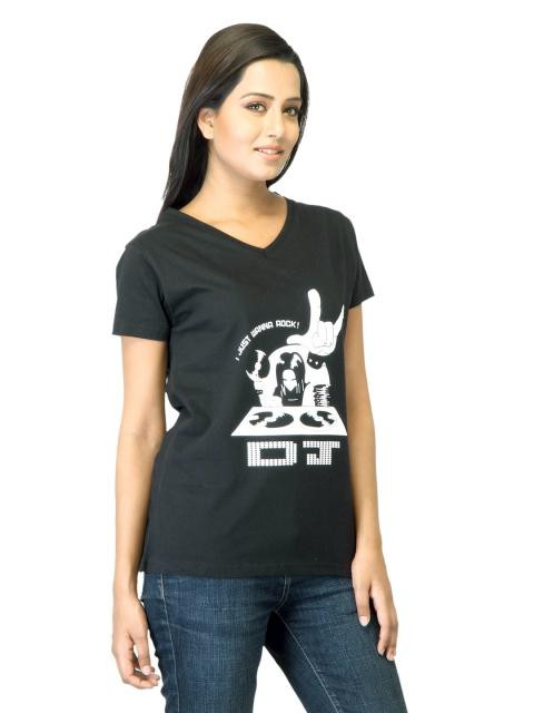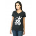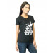 Black V- neck T-shirt made of 100% cotton, has short sleeves, a ribbed neckline and graphic on the chest