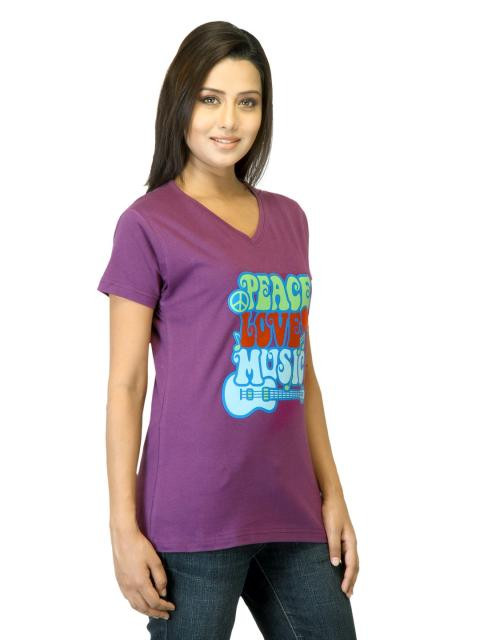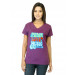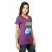 Purple V- neck T-shirt made of 100% cotton, has short sleeves, a ribbed neckline and graphic on the chest