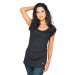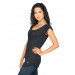 Black round neck top made of 100% cotton, with short sleeves pulled up by buttoned shoulder flaps and metallic embellishments forming the Big Ben logo on the left of the rounded hemline