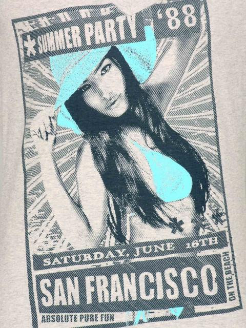 The model wears size M in t-shirts