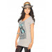 Grey V-neck t-shirt with made of 100% cotton, with short sleeves and graphic print on the front