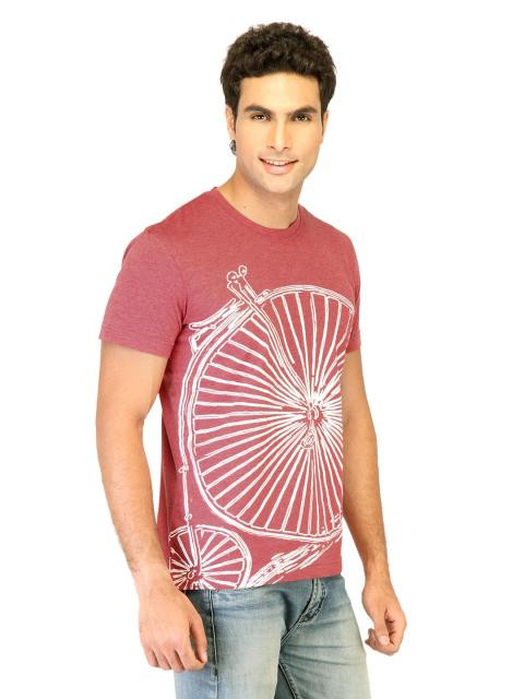 Bold and stylish, this red melange t-shirt from united colors of benetton is perfect for casual wear. The distressed look image on the chest of a vintage cycle exudes a funky vibe, while the cotton fabric keeps you feeling fresh and comfortable all day long. Team this with jeans and canvas shoes for that cool, casual look.