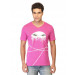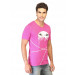 Fuschia pink V-neck t-shirt made of 100% cotton, has short sleeves and graphic print on the front