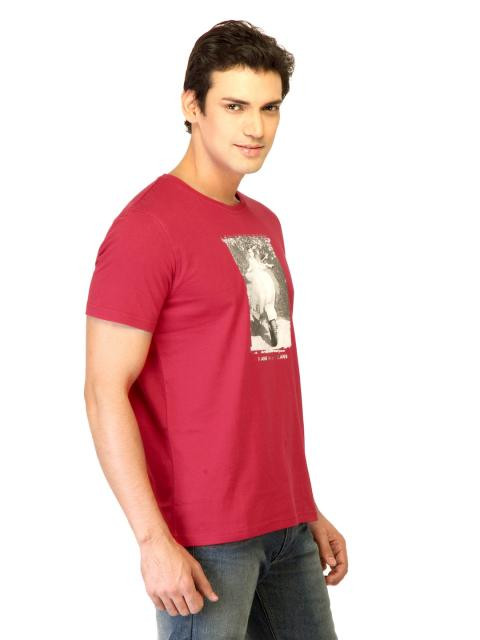 Bold and stylish, this red t-shirt from united colors of benetton is perfect for casual wear. The distressed look photographic image of a kid sitting on an old scooter gives a vintage vibe, while the cotton fabric keeps you feeling fresh and comfortable all day long. Team this with jeans and canvas shoes for that cool, casual look.