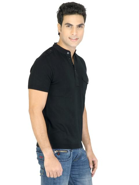 Update your sophisticated style with this black woven T-shirt from United Colours of Benetton. The ribbing adds interesting details, while the cotton fabric keeps you fresh and comfortable all day. Team this with jeans or chinos and comfortable-yet-stylish lifestyle footwear from the wide collection available at myntra for casual occasions.