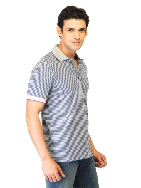 Look cool and sophisticated in this blue and grey pique polo T-shirt from United Colours of Benetton. The appliqued logo on the left chest adds an interesting detail to the tee, while the cotton keeps you feeling fresh and comfortable all day. Team this with jeans or chinos and comfortable-yet-stylish lifestyle footwear from the wide collection available at myntra for casual occasions.