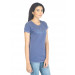 Blue round neck T-shirt made of 100% cotton, has short sleeves and printed branding on the front