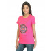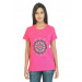 Fuchsia pink round neck T-shirt made of 100% cotton, has short sleeves and graphic print on the front