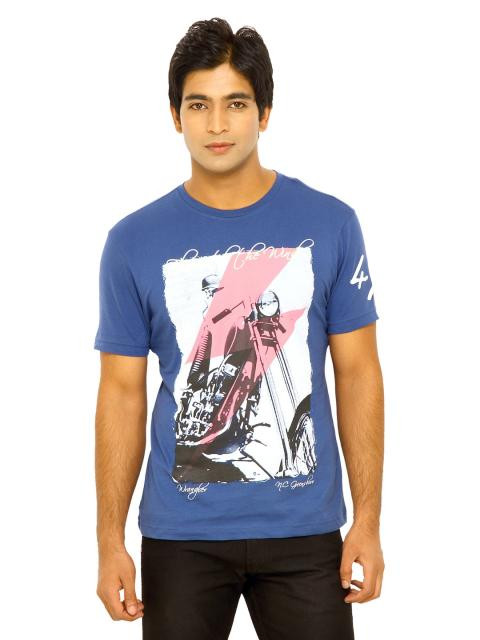 Flaunt your chilled-out biker attitude in style with this blue t-shirt from wrangler, the company that has been doling out fabulous jean wear and casual clothes since 1947. The short sleeves sit snug on well-toned arms, while the cotton fabric keeps your fresh and comfortable all day. Team this with jeans and sports shoes or cotton shorts and leather sandals for unparalleled cool.