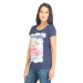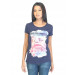 Navy blue round neck T-shirt made of 100% cotton, has short sleeves and graphic print with sequins on the front