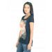 Black round neck T-shirt made of 100% cotton, has short sleeves and graphic print on the chest