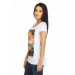 White T-shirt made of 100% cotton, has a ribbed round neck, short sleeves with stitched detailing on the cuffs and graphic print on the front