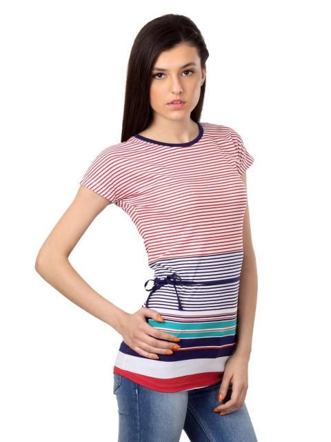 Red and white striped shirt with a round neck and half sleeves