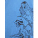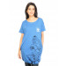 Blue round neck tunic, has short sleeves, patch pocket with branding on the left chest and print