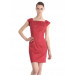 Red sleeveless square neck tunic made of blended cotton fabric, with pintucks at the chest