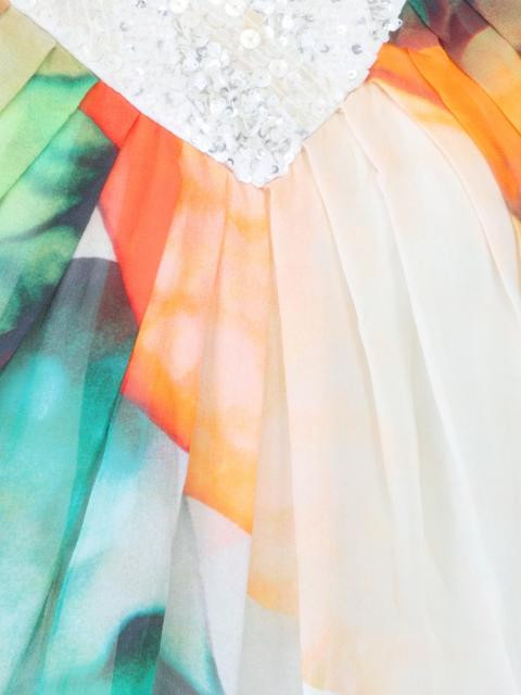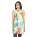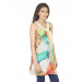 Multi-coloured printed sleeveless V-neck Tunic made of a blended fabric, has flaring pintucks at the chest and sequin work along the neckline