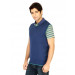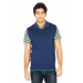 Navy blue knit sleeveless vest made of 100% cotton, and has ribbed armholes, V-neck and hemline with green tipping