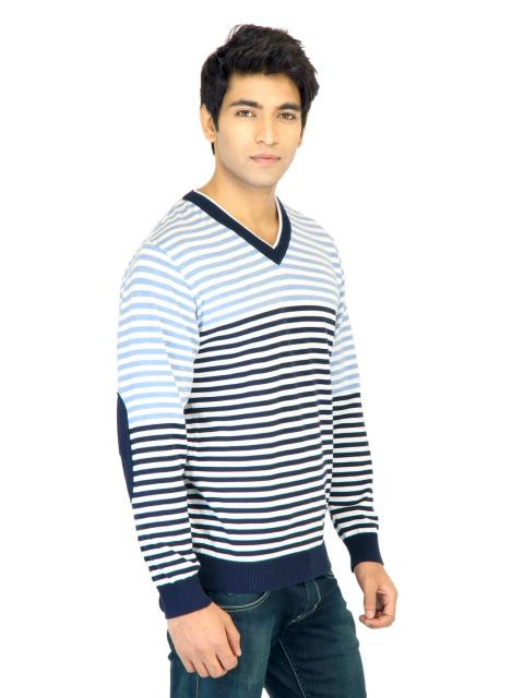 The navy blue and light blue stripes and elbow patches add smooth styling to this white knit pullover from turtle. The soft cotton knit fabric keeps you feeling comfortable all day, while the fashionable cuts offer a flattering silhouette. Part of the proceeds from the sale of this product go towards the Save Turtle project in collaboration with WWF and Wildlife Society of Orissa, making it an environment friendly choice. Team this with shirts or t-shirts and jeans.