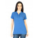 Blue polo T-shirt made of 100% cotton, has short sleeves, ribbed collar with a buttoned chest placket, branding on the left chest and a vented hem