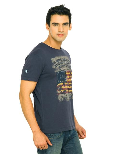 Wrangler Men American Music Folk Navy Blue T-Shirts