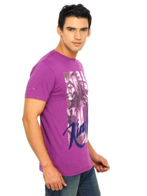 Groove to the tunes of Urban Folk in style with this purple t-shirt from wrangler. The short sleeves sit snug on well-toned arms, while the cotton fabric keeps your fresh and comfortable all day. Team this with jeans and sports shoes or cotton shorts and leather sandals for unparalleled cool.