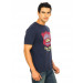 Navy blue round neck t-shirt made of 100% cotton, with short sleeves and graphic print on the front