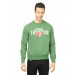 Green sweatshirt made of 80% cotton and 20% polyester, has a round ribbed neckline, long raglan sleeves with ribbed cuffs, embroidered and appliquéd branding on the chest and a ribbed hem