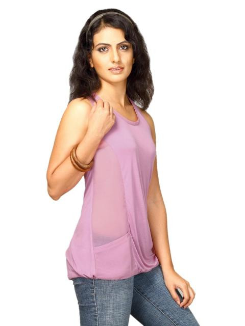 Pink racerback round neck top made of 100% viscose with 100% polyester trimmings, two pockets on the front close to the hem and drawstring at the hemline for a customized Fit