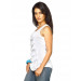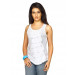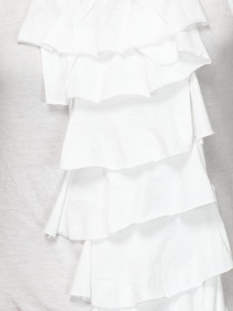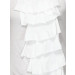 White sleeveless round neck top made of 100% cotton, with short ruffles starting from below the neckline upto the hem and a curved hemline