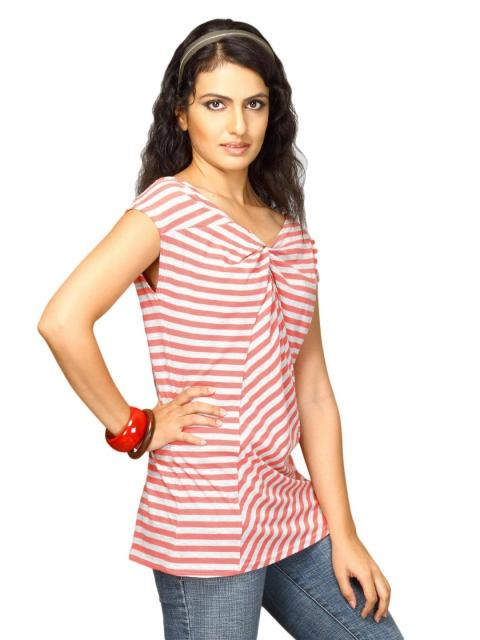This knotted orange and grey t-shirt from the united colors of benetton is perfect for a day out in the sun, rain or wind! The knotted front adds to the style quotient of this cotton tee. Pair it with jeans, shorts or capris and make an enviable fashion statement.