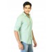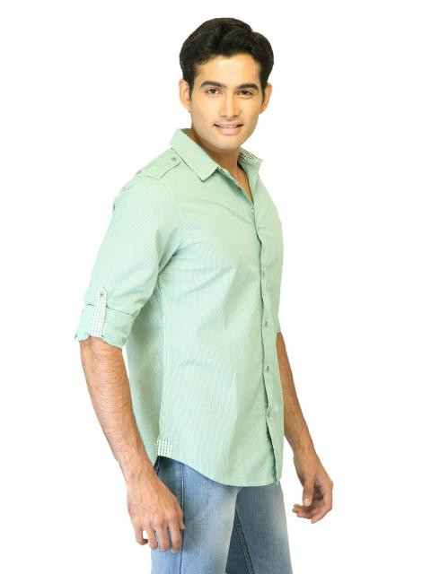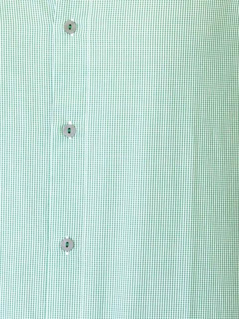 Green and white check shirt, made of 100% cotton, has full sleeves with buttoned cuffs, tipped collar with a buttoned front placket and a curved hem