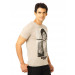 Light beige round neck t-shirt made of 70% modal and 30% polyester, with short sleeves, vented hem and graphic print on the front