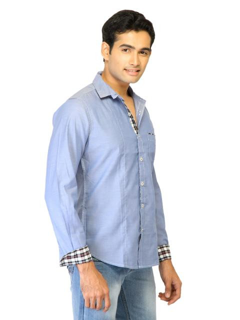 Upgrade youre simple sophisticated style in this light blue woven shirt from United Colours of Benetton. The plaid panels and the pocket on the upper left chest adds an interesting touch to this shirt, while the cotton fabric keeps you feeling fresh and comfortable all day. Team this with jeans or chinos and comfortable-yet-stylish lifestyle footwear from the wide collection available at myntra for casual occasions.