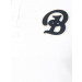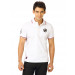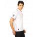 White polo t-shirt made of 100% cotton, with a ribbed collar, buttoned rugged chest placket, short sleeves with ribbed hems, appliqué d branding on right sleeve, appliqué with embroidery on left chest, vented hem and red lining on the collar, sleeve hems and side seams
