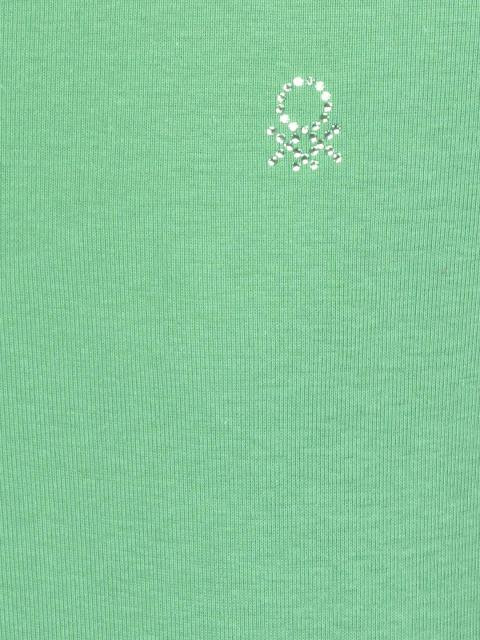 Green round neck T-shirt made of 100% cotton, with short sleeves and branding with crystal embellishments on the left chest