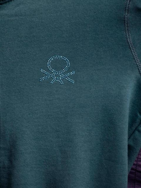Green hooded jacket made of 100% cotton, with a full front zipper and ribbed hem, full arn sleeves with ribbed hems, attached hood and Big Ben logo in metallic embellishments on left chest