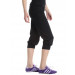 Black foldaway capris made of 95% cotton and 5% lycra, has an elasticated waistband and brand embroidery on the left side on the waistband
