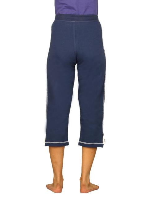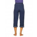 Stretchable easy-Fit capris in navy blue made of 100% cotton with spandex technology, drawstrings and soft elastic waistband and flattened seam
