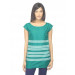 Green boat neck top made of of 100% cotton, has short raglan sleeves, button up details at the shoulder and print along the midriff