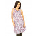 White printed kurta made of 100% cotton, sleeveless, round neck with purple piping extending onto the buttoned chest placket, pintucks running along the entire length of the kurta and has a curved hemline