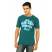 Teal round neck t-shirt made of 100% cotton, with short sleeves and glow print on the front