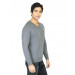 Charcoal V-neck sweater made of 100% cotton, has a ribbed neck with a second yellow neckline inside, long sleeves with ribbed cuffs, ribbed hem and embroidered brand logo on the left chest