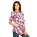 Red and white checked shirt made of 100% cotton, with three-fourth cuff sleeves, has a split neckline with a tipped collar and full front button placket, two flap chest pockets on the chest and two pockets on the waist, and a curved hemline